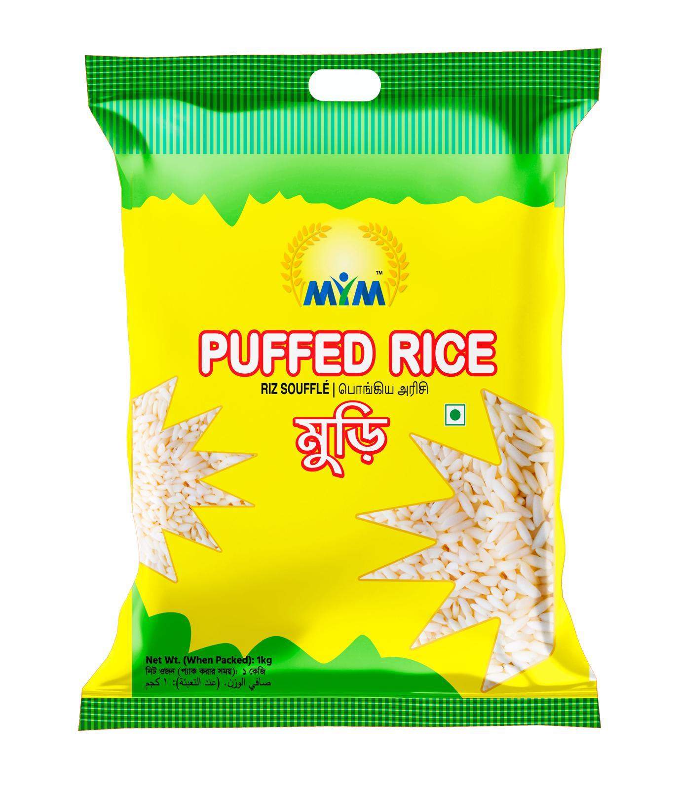 Puffed rice is a light and crunchy rice snack, made by gently puffing rice grains to create a crispy texture—ideal for healthy snacking or culinary creations.